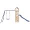 Aire de jeux d'extérieur bois de pin massifVous voulez donner à vos enfants la liberté de jouer à la maison ? Cet ensemble de jeu d'extérieur en bois transforme votre jardin en un terrain de jeu propice aux aventures imaginatives ! Matériau durable : ce cadre d'aire de jeux de jardin est fabriqué en bois de pin massif. Le bois de pin massif est connu pour sa résistance et sa durabilité. Ses grains droits et ses noeuds distinctifs contribuent à son charme rustique.Cadre en bois stable : le cadre en bois de la maisonnette de jardin garantit sa robustesse et sa stabilité. De plus, les pieds en forme de A de la balançoire pour enfants permettent de garder l'équilibre.Centres multi-activités : le cadre d'escalade est doté d'une plate-forme de 90 cm de hauteur et se distingue par son toboggan ondulé, une balançoire simple, une paroi rocheuse ainsi qu'un bac à sable. Vos enfants peuvent également inviter leurs amis à s'amuser.Conception réfléchie : les garde-corps en bois qui entourent l'abri sont conçus pour assurer la sécurité des enfants pendant qu'ils s'amusent. De plus, le toit en forme de nuage offre de l'ombre à vos enfants pendant les chaudes journées d'été.Plaisir sans fin : cette aire de jeux d'extérieur en bois est le moyen idéal pour vos enfants et leurs amis de se divertir, d'avoir plus de temps interactif et de créer des souvenirs pour vous et vos enfants ! Attention :Uniquement pour un usage domestiqueUtilisation extérieureNe convient pas aux enfants de moins de 3 ansÂge recommandé : 3-8 ans Bon à savoir :La livraison inclut uniquement le toboggan, le théâtre n'est pas inclus.Le produit doit être ancré afin de réduire les risques de basculement. Les ancrages ne sont pas inclus. Avertissement. Ne convient pas aux enfants de moins de 3 ans. Usage domestique uniquement. GPSR