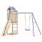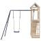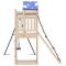 Aire de jeux d'extérieur bois de pin massifVous voulez donner à vos enfants la liberté de jouer à la maison ? Cet ensemble de jeu d'extérieur en bois transforme votre jardin en un terrain de jeu propice aux aventures imaginatives ! Matériau durable : ce cadre d'aire de jeux de jardin est fabriqué en bois de pin massif. Le bois de pin massif est connu pour sa résistance et sa durabilité. Ses grains droits et ses noeuds distinctifs contribuent à son charme rustique.Cadre en bois stable : le cadre en bois de la maisonnette de jardin garantit sa robustesse et sa stabilité. De plus, les pieds en forme de A de la balançoire pour enfants permettent de garder l'équilibre.Centres multi-activités : le cadre d'escalade est doté d'une plate-forme de 118 cm de hauteur et se distingue par son mur d'escalade, une balançoire simple ainsi que des bacs à sable. Vos enfants peuvent également inviter leurs amis à s'amuser.Conception réfléchie : les garde-corps en bois qui entourent l'abri sont conçus pour assurer la sécurité des enfants pendant qu'ils s'amusent. De plus, le toit en forme de nuage offre de l'ombre à vos enfants pendant les chaudes journées d'été.Plaisir sans fin : cette aire de jeux d'extérieur en bois est le moyen idéal pour vos enfants et leurs amis de se divertir, d'avoir plus de temps interactif et de créer des souvenirs pour vous et vos enfants ! Attention :Uniquement pour un usage domestiqueUtilisation extérieureNe convient pas aux enfants de moins de 3 ansÂge recommandé : 3-8 ansPoids maximal par utilisateur : 45 kg Bon à savoir :Le produit doit être ancré afin de réduire les risques de basculement. Les ancrages ne sont pas inclus. Avertissement. Ne convient pas aux enfants de moins de 3 ans. Usage domestique uniquement. GPSR