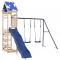 Aire de jeux d'extérieur bois de pin massifVous voulez donner à vos enfants la liberté de jouer à la maison ? Cet ensemble de jeu d'extérieur en bois transforme votre jardin en un terrain de jeu propice aux aventures imaginatives ! Matériau durable : ce cadre d'aire de jeux de jardin est fabriqué en bois de pin massif. Le bois de pin massif est connu pour sa résistance et sa durabilité. Ses grains droits et ses noeuds distinctifs contribuent à son charme rustique.Cadre en bois stable : le cadre en bois de la maisonnette de jardin garantit sa robustesse et sa stabilité. De plus, les pieds en forme de A de la balançoire pour enfants permettent de garder l'équilibre.Centres multi-activités : le cadre d'escalade est doté d'une plate-forme de 118 cm de hauteur et se distingue par son toboggan ondulé, une balançoire double, une paroi rocheuse ainsi qu'un bac à sable. Vos enfants peuvent également inviter leurs amis à se joindre à eux.Conception réfléchie : les garde-corps en bois qui entourent l'abri sont conçus pour assurer la sécurité des enfants pendant qu'ils s'amusent. De plus, le toit en forme de nuage offre de l'ombre à vos enfants pendant les chaudes journées d'été.Plaisir sans fin : cette aire de jeux d'extérieur en bois est le moyen idéal pour vos enfants et leurs amis de se divertir, d'avoir plus de temps interactif et de créer des souvenirs pour vous et vos enfants ! Attention :Uniquement pour un usage domestiqueUtilisation extérieureNe convient pas aux enfants de moins de 3 ansÂge recommandé : 3-8 ans Bon à savoir :Le produit doit être ancré afin de réduire les risques de basculement. Les ancres sont incluses. Avertissement. Ne convient pas aux enfants de moins de 3 ans. Usage domestique uniquement. GPSR