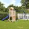 Aire de jeux d'extérieur bois de pin massifVous voulez donner à vos enfants la liberté de jouer à la maison ? Cet ensemble de jeu d'extérieur en bois transforme votre jardin en un terrain de jeu propice aux aventures imaginatives ! Matériau durable : ce cadre d'escalade de jardin est fabriqué en bois de pin massif. Le pin massif est un matériau naturel magnifique. Le bois de pin a un grain droit et les noeuds lui confèrent son aspect rustique caractéristique.Cadre robuste et stable : le cadre en bois de jeu de jardin assure la robustesse et la stabilité. De plus, les pieds en forme de A de la balançoire pour enfants permettent de garder l'équilibre.Centres multi-activités : le cadre d'escalade est doté d'une plate-forme de 90 cm de hauteur et se distingue par son mur d'escalade, son toboggan ondulé, sa balançoire simple ainsi que par son bac à sable. Vos enfants peuvent également inviter leurs amis à s'amuser.Conception réfléchie : les balustrades en bois entourant sont conçues pour assurer la sécurité des enfants pendant qu'ils s'amusent. De plus, le toit en bois offre de l'ombre à vos enfants pendant les chaudes journées d'été.Plaisir sans fin : cette maisonnette de jeu extérieure en bois est le moyen idéal pour vos enfants et leurs amis de se divertir, d'avoir plus de temps interactif et de créer des souvenirs pour vous et vos enfants ! Attention :Uniquement pour un usage domestiqueUtilisation extérieureNe convient pas aux enfants de moins de 3 ansÂge recommandé : 3-8 ans Remarque :Le produit doit être ancré afin de réduire les risques de basculement. Les ancrages ne sont pas inclus. Bon à savoir :La livraison inclut uniquement le toboggan, le théâtre n'est pas inclus.Pour faciliter au maximum le montage, chaque produit est livré avec des instructions. Avertissement. Ne convient pas aux enfants de moins de 3 ans. Usage domestique uniquement. GPSR