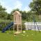 Aire de jeux d'extérieur bois de pin massifVous voulez donner à vos enfants la liberté de jouer à la maison ? Cet ensemble de jeu d'extérieur en bois transforme votre jardin en un terrain de jeu propice aux aventures imaginatives ! Bois de pin massif : ce cadre d'escalade de jardin est fabriqué en bois de pin massif. Le pin massif est un matériau naturel magnifique. Le bois de pin a un grain droit et les noeuds lui confèrent son aspect rustique caractéristique.Cadre robuste et stable : le cadre en bois de l'ensemble de jeu assure la robustesse et la stabilité. De plus, les pieds en forme de A de la balançoire pour enfants permettent de garder l'équilibre.Centres multi-activités : l'aire de jeux est dotée d'une plate-forme de 118 cm de hauteur et se distingue par son toboggan ondulé, une balançoire simple ainsi qu'un bac à sable. Vos enfants peuvent également inviter leurs amis à jouer ensemble.Conception réfléchie : les garde-corps en bois qui entourent l'abri sont conçus pour assurer la sécurité des enfants pendant qu'ils s'amusent. De plus, le toit en bois offre de l'ombre à vos enfants pendant les chaudes journées d'été.Plaisir sans fin : cette maisonnette de jeu en bois est le moyen idéal pour vos enfants et leurs amis de se divertir, d'avoir plus de temps interactif et de créer des souvenirs pour vous et vos enfants ! Attention :Uniquement pour un usage domestiqueUtilisation extérieureNe convient pas aux enfants de moins de 3 ansÂge recommandé : 3-8 ans Remarque :Le produit doit être ancré afin de réduire les risques de basculement. Les ancres sont incluses. Avertissement. Ne convient pas aux enfants de moins de 3 ans. Usage domestique uniquement. GPSR