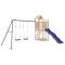 Aire de jeux d'extérieur bois de pin massifVous voulez donner à vos enfants la liberté de jouer à la maison ? Cet ensemble de jeu d'extérieur en bois transforme votre jardin en un terrain de jeu propice aux aventures imaginatives ! Matériau durable : cette maisonnette de jeu est fabriquée en bois de pin massif. Le bois de pin massif est un matériau naturel magnifique. Le bois de pin a un grain droit et les noeuds donnent au matériau son aspect caractéristique et rustique.Cadre robuste et stable : le cadre en bois assure la robustesse et la stabilité. De plus, les pieds en forme de A de la balançoire pour enfants permettent de garder l'équilibre. Centres multi-activités : le cadre d'escalade est doté d'une plate-forme de 90 cm de hauteur et se distingue par son toboggan ondulé, une échelle, une double balançoire et des bacs à sable. Vos enfants peuvent également inviter leurs amis à s'amuser. Conception réfléchie : les balustrades en bois entourant sont conçues pour assurer la sécurité des enfants pendant qu'ils s'amusent. De plus, le toit en bois offre de l'ombre à vos enfants pendant les chaudes journées d'été.Plaisir sans fin : cette maisonnette de jeu extérieure en bois est le moyen idéal pour vos enfants et leurs amis de se divertir, d'avoir plus de temps interactif et de créer des souvenirs pour vous et vos enfants ! Attention :Uniquement pour un usage domestiqueUtilisation extérieure Ne convient pas aux enfants de moins de 3 ans Âge recommandé : 3-8 ans Remarque :Le produit doit être ancré afin de réduire les risques de basculement. Les ancrages ne sont pas inclus. Bon à savoir :La livraison inclut uniquement le toboggan, le théâtre n'est pas inclus.Pour faciliter au maximum le montage, chaque produit est livré avec des instructions. Avertissement. Ne convient pas aux enfants de moins de 3 ans. Usage domestique uniquement. GPSR