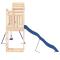 Aire de jeux d'extérieur bois de pin massifVous voulez donner à vos enfants la liberté de jouer à la maison ? Cet ensemble de jeu d'extérieur en bois transforme votre jardin en un terrain de jeu propice aux aventures imaginatives ! Bois de pin massif : ce cadre d'escalade de jardin est fabriqué en bois de pin massif. Le pin massif est un matériau naturel magnifique. Le bois de pin a un grain droit et les noeuds lui confèrent son aspect rustique caractéristique.Cadre robuste et stable : le cadre en bois de l'ensemble de jeu assure la robustesse et la stabilité. De plus, les pieds en forme de A de la balançoire pour enfants permettent de garder l'équilibre.Centres multi-activités : l'aire de jeux est dotée d'une plate-forme de 118 cm de hauteur et se distingue par son toboggan ondulé, une balançoire simple ainsi qu'un bac à sable. Vos enfants peuvent également inviter leurs amis à jouer ensemble. Conception réfléchie : les garde-corps en bois qui entourent l'abri sont conçus pour assurer la sécurité des enfants pendant qu'ils s'amusent. De plus, le toit en bois offre de l'ombre à vos enfants pendant les chaudes journées d'été.Plaisir sans fin : cette maisonnette de jeu en bois est le moyen idéal pour vos enfants et leurs amis de se divertir, d'avoir plus de temps interactif et de créer des souvenirs pour vous et vos enfants ! Attention :Uniquement pour un usage domestiqueUtilisation extérieureNe convient pas aux enfants de moins de 3 ansÂge recommandé : 3-8 ans Remarque :Le produit doit être ancré afin de réduire les risques de basculement. Les ancres sont incluses. Avertissement. Ne convient pas aux enfants de moins de 3 ans. Usage domestique uniquement. GPSR