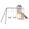 Aire de jeux d'extérieur bois de pin massifVous voulez donner à vos enfants la liberté de jouer à la maison ? Cet ensemble de jeu d'extérieur en bois transforme votre jardin en un terrain de jeu propice aux aventures imaginatives ! Matériau durable : ce cadre d'aire de jeux de jardin est fabriqué en bois de pin massif. Le bois de pin massif est connu pour sa résistance et sa durabilité. Ses grains droits et ses noeuds distinctifs contribuent à son charme rustique.Cadre en bois stable : le cadre en bois de la maisonnette de jardin garantit sa robustesse et sa stabilité. De plus, les pieds en forme de A de la balançoire pour enfants permettent de garder l'équilibre.Centres multi-activités : le cadre d'escalade est doté d'une plate-forme de 90 cm de hauteur et se distingue par son toboggan à vagues, une balançoire double, une échelle ainsi qu'un bac à sable. Vos enfants peuvent également inviter leurs amis à se joindre à eux.Conception réfléchie : les garde-corps en bois qui entourent l'abri sont conçus pour assurer la sécurité des enfants pendant qu'ils s'amusent. De plus, le toit en forme de nuage offre de l'ombre à vos enfants pendant les chaudes journées d'été.Plaisir sans fin : cette aire de jeux d'extérieur en bois est le moyen idéal pour vos enfants et leurs amis de se divertir, d'avoir plus de temps interactif et de créer des souvenirs pour vous et vos enfants ! Attention :Uniquement pour un usage domestiqueUtilisation extérieureNe convient pas aux enfants de moins de 3 ansÂge recommandé : 3-8 ans Bon à savoir :La livraison inclut uniquement le toboggan, le théâtre n'est pas inclus.Le produit doit être ancré afin de réduire les risques de basculement. Les ancrages ne sont pas inclus. Avertissement. Ne convient pas aux enfants de moins de 3 ans. Usage domestique uniquement. GPSR
