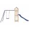 Aire de jeux d'extérieur bois de pin massifVous voulez donner à vos enfants la liberté de jouer à la maison ? Cet ensemble de jeu d'extérieur en bois transforme votre jardin en un terrain de jeu propice aux aventures imaginatives ! Matériau durable : ce cadre d'escalade avec toboggan est fabriqué en bois de pin massif. Le pin massif est un matériau naturel magnifique. Le bois de pin a un grain droit et les noeuds lui confèrent son aspect rustique caractéristique.Cadre robuste et stable : le cadre en bois du cadre d'escalade de jardin assure la robustesse et la stabilité. De plus, les pieds en forme de A de la balançoire pour enfants permettent de garder l'équilibre.Centres multi-activités : le cadre d'escalade est doté d'une plate-forme de 90 cm de hauteur et se distingue par son toboggan à vagues, une balançoire, une échelle, une paroi rocheuse ainsi qu'un bac à sable. Vos enfants peuvent également inviter leurs amis à se joindre à eux. Conception réfléchie : les balustrades en bois entourant sont conçues pour assurer la sécurité des enfants pendant qu'ils s'amusent. De plus, le toit en bois offre de l'ombre à vos enfants pendant les chaudes journées d'été.Plaisir sans fin : cette maisonnette de jeu extérieure en bois est le moyen idéal pour vos enfants et leurs amis de se divertir, d'avoir plus de temps interactif et de créer des souvenirs pour vous et vos enfants ! Attention :Uniquement pour un usage domestiqueUtilisation extérieure Ne convient pas aux enfants de moins de 3 ans Âge recommandé : 3-8 ans Remarque :Le produit doit être ancré afin de réduire les risques de basculement. Les ancrages ne sont pas inclus. Bon à savoir :Pour faciliter au maximum le montage, chaque produit est livré avec des instructions. Avertissement. Ne convient pas aux enfants de moins de 3 ans. Usage domestique uniquement. GPSR