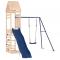 Aire de jeux d'extérieur bois de pin massifVous voulez donner à vos enfants la liberté de jouer à la maison ? Cet ensemble de jeu d'extérieur en bois transforme votre jardin en un terrain de jeu propice aux aventures imaginatives ! Bois de pin massif : ce cadre d'escalade de jardin est fabriqué en bois de pin massif. Le pin massif est un matériau naturel magnifique. Le bois de pin a un grain droit et les noeuds lui confèrent son aspect rustique caractéristique.Cadre robuste et stable : le cadre en bois de l'ensemble de jeu assure la robustesse et la stabilité. De plus, les pieds en forme de A de la balançoire pour enfants permettent de garder l'équilibre.Centres multi-activités : le cadre d'escalade est doté d'une plate-forme de 90 cm de hauteur et se distingue par son mur d'escalade, un toboggan ondulé, une balançoire simple ainsi qu'un bac à sable. Vos enfants peuvent également inviter leurs amis à s'amuser.Conception réfléchie : les garde-corps en bois qui entourent l'abri sont conçus pour assurer la sécurité des enfants pendant qu'ils s'amusent. De plus, le toit en bois offre de l'ombre à vos enfants pendant les chaudes journées d'été.Plaisir sans fin : cette aire de jeux de jardin en bois est le moyen idéal pour vos enfants et leurs amis de se divertir, d'avoir plus de temps interactif et de créer des souvenirs pour vous et vos enfants ! Attention :Uniquement pour un usage domestiqueUtilisation extérieureNe convient pas aux enfants de moins de 3 ansÂge recommandé : 3-8 ans Remarque :Le produit doit être ancré afin de réduire les risques de basculement. Les ancres sont incluses. Bon à savoir :Pour faciliter au maximum le montage, chaque produit est livré avec des instructions. Avertissement. Ne convient pas aux enfants de moins de 3 ans. Usage domestique uniquement. GPSR