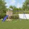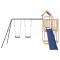Aire de jeux d'extérieur bois de pin massifVous voulez donner à vos enfants la liberté de jouer à la maison ? Cet ensemble de jeu d'extérieur en bois transforme votre jardin en un terrain de jeu propice aux aventures imaginatives ! Matériau durable : ce cadre d'aire de jeux de jardin est fabriqué en bois de pin massif. Le bois de pin massif est connu pour sa résistance et sa durabilité. Ses grains droits et ses noeuds distinctifs contribuent à son charme rustique.Cadre en bois stable : le cadre en bois de la maisonnette de jardin garantit sa robustesse et sa stabilité. De plus, les pieds en forme de A de la balançoire pour enfants permettent de garder l'équilibre.Centres multi-activités : le cadre d'escalade est doté d'une plate-forme de 90 cm de hauteur et se distingue par son toboggan à vagues, une balançoire double, une échelle ainsi que des bacs à sable. Vos enfants peuvent également inviter leurs amis à se joindre à eux.Conception réfléchie : les garde-corps en bois qui entourent l'abri sont conçus pour assurer la sécurité des enfants pendant qu'ils s'amusent. De plus, le toit en forme de nuage offre de l'ombre à vos enfants pendant les chaudes journées d'été.Plaisir sans fin : cette aire de jeux d'extérieur en bois est le moyen idéal pour vos enfants et leurs amis de se divertir, d'avoir plus de temps interactif et de créer des souvenirs pour vous et vos enfants ! Attention :Uniquement pour un usage domestiqueUtilisation extérieureNe convient pas aux enfants de moins de 3 ansÂge recommandé : 3-8 ans Bon à savoir :Le produit doit être ancré afin de réduire les risques de basculement. Les ancrages ne sont pas inclus. Avertissement. Ne convient pas aux enfants de moins de 3 ans. Usage domestique uniquement. GPSR