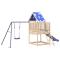 Aire de jeux d'extérieur bois de pin massifVous voulez donner à vos enfants la liberté de jouer à la maison ? Cet ensemble de jeu d'extérieur en bois transforme votre jardin en un terrain de jeu propice aux aventures imaginatives ! Matériau durable : ce cadre d'aire de jeux de jardin est fabriqué en bois de pin massif. Le bois de pin massif est connu pour sa résistance et sa durabilité. Ses grains droits et ses noeuds distinctifs contribuent à son charme rustique.Cadre en bois stable : le cadre en bois de la maisonnette de jardin garantit sa robustesse et sa stabilité. De plus, les pieds en forme de A de la balançoire pour enfants permettent de garder l'équilibre.Centres multi-activités : le cadre d'escalade est doté d'une plate-forme de 90 cm de hauteur et se distingue par son toboggan ondulé, une balançoire simple, une échelle et un bac à sable. Vos enfants peuvent également inviter leurs amis à s'amuser.Conception réfléchie : les garde-corps en bois qui entourent l'abri sont conçus pour assurer la sécurité des enfants pendant qu'ils s'amusent. De plus, le toit en forme de nuage offre de l'ombre à vos enfants pendant les chaudes journées d'été.Plaisir sans fin : cette aire de jeux d'extérieur en bois est le moyen idéal pour vos enfants et leurs amis de se divertir, d'avoir plus de temps interactif et de créer des souvenirs pour vous et vos enfants ! Attention :Uniquement pour un usage domestiqueUtilisation extérieureNe convient pas aux enfants de moins de 3 ansÂge recommandé : 3-8 ans Bon à savoir :Le produit doit être ancré afin de réduire les risques de basculement. Les ancrages ne sont pas inclus. Avertissement. Ne convient pas aux enfants de moins de 3 ans. Usage domestique uniquement. GPSR