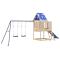 Aire de jeux d'extérieur bois de pin massifVous voulez donner à vos enfants la liberté de jouer à la maison ? Cet ensemble de jeu d'extérieur en bois transforme votre jardin en un terrain de jeu propice aux aventures imaginatives ! Matériau durable : ce cadre d'aire de jeux de jardin est fabriqué en bois de pin massif. Le bois de pin massif est connu pour sa résistance et sa durabilité. Ses grains droits et ses noeuds distinctifs contribuent à son charme rustique.Cadre en bois stable : le cadre en bois de la maisonnette de jardin garantit sa robustesse et sa stabilité. De plus, les pieds en forme de A de la balançoire pour enfants permettent de garder l'équilibre.Centres multi-activités : le cadre d'escalade est doté d'une plate-forme de 90 cm de hauteur et se distingue par son toboggan à vagues, une balançoire double, une échelle ainsi qu'un bac à sable. Vos enfants peuvent également inviter leurs amis à se joindre à eux.Conception réfléchie : les garde-corps en bois qui entourent l'abri sont conçus pour assurer la sécurité des enfants pendant qu'ils s'amusent. De plus, le toit en forme de nuage offre de l'ombre à vos enfants pendant les chaudes journées d'été.Plaisir sans fin : cette aire de jeux d'extérieur en bois est le moyen idéal pour vos enfants et leurs amis de se divertir, d'avoir plus de temps interactif et de créer des souvenirs pour vous et vos enfants ! Attention :Uniquement pour un usage domestiqueUtilisation extérieureNe convient pas aux enfants de moins de 3 ansÂge recommandé : 3-8 ans Bon à savoir :Le produit doit être ancré afin de réduire les risques de basculement. Les ancrages ne sont pas inclus. Avertissement. Ne convient pas aux enfants de moins de 3 ans. Usage domestique uniquement. GPSR