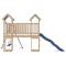 Aire de jeux d'extérieur bois de pin massifVous voulez donner à vos enfants la liberté de jouer à la maison ? Cet ensemble de jeu d'extérieur en bois transforme votre jardin en un terrain de jeu propice aux aventures imaginatives ! Matériau durable : ce cadre d'aire de jeux de jardin est fabriqué en bois de pin massif. Le bois de pin massif est connu pour sa résistance et sa durabilité. Ses grains droits et ses noeuds distinctifs contribuent à son charme rustique. Cadre en bois stable : le cadre en bois de la maisonnette de jardin garantit sa robustesse et sa stabilité. De plus, les pieds en forme de A de la balançoire pour enfants permettent de garder l'équilibre. Centres multi-activités : le cadre d'escalade est doté d'une plate-forme de 90 cm de hauteur et se distingue par son toboggan ondulé, une double balançoire et des bacs à sable. Vos enfants peuvent également inviter leurs amis à s'amuser. Conception réfléchie : les garde-corps en bois qui entourent l'abri sont conçus pour assurer la sécurité des enfants pendant qu'ils s'amusent. De plus, le toit en forme de nuage offre de l'ombre à vos enfants pendant les chaudes journées d'été. Plaisir sans fin : cette aire de jeux d'extérieur en bois est le moyen idéal pour vos enfants et leurs amis de se divertir, d'avoir plus de temps interactif et de créer des souvenirs pour vous et vos enfants ! Attention : Uniquement pour un usage domestique Utilisation extérieure Ne convient pas aux enfants de moins de 3 ans Âge recommandé : 3-8 ans Avertissement. Ne convient pas aux enfants de moins de 3 ans. Plateforme. Risque de chute. Usage domestique uniquement. Usage extérieur. Ce produit est destiné à être utilisé par des enfants âgés de 3 à 8 ans. Poids maximal par enfant : 45 kg. Deux enfants au maximum peuvent utiliser le produit simultanément. Risque de blessures graves à la tête ou de mort en cas de chute depuis un équipement placé sur une surface dure. Risque lié à l'utilisation de casques et autres articles pouvant s'enrouler autour du cou d'un enfant, s'emmêler ou se coincer dans l'équipement, et entraîner un étranglement ou la mort. GPSR