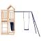 Aire de jeux d'extérieur bois de pin massifVous voulez donner à vos enfants la liberté de jouer à la maison ? Cet ensemble de jeu d'extérieur en bois transforme votre jardin en un terrain de jeu propice aux aventures imaginatives ! Bois de pin massif : ce cadre d'escalade de jardin est fabriqué en bois de pin massif. Le pin massif est un matériau naturel magnifique. Le bois de pin a un grain droit et les noeuds lui confèrent son aspect rustique caractéristique. Cadre robuste et stable : le cadre en bois de l'ensemble de jeu assure la robustesse et la stabilité. De plus, les pieds en forme de A de la balançoire pour enfants permettent de garder l'équilibre. Centres multi-activités : le cadre d'escalade est doté d'une plate-forme de 90 cm de hauteur et se distingue par son toboggan ondulé, une balançoire simple et des bacs à sable. Vos enfants peuvent également inviter leurs amis à s'amuser. Conception réfléchie : les garde-corps en bois qui entourent l'abri sont conçus pour assurer la sécurité des enfants pendant qu'ils s'amusent. De plus, le toit en bois offre de l'ombre à vos enfants pendant les chaudes journées d'été. Plaisir sans fin : cette aire de jeux de jardin en bois est le moyen idéal pour vos enfants et leurs amis de se divertir, d'avoir plus de temps interactif et de créer des souvenirs pour vous et vos enfants ! Attention : Uniquement pour un usage domestique Utilisation extérieure Ne convient pas aux enfants de moins de 3 ans Âge recommandé : 3-8 ans Bon à savoir : Pour faciliter au maximum le montage, chaque produit est livré avec des instructions. Avertissement. Ne convient pas aux enfants de moins de 3 ans. Usage domestique uniquement. GPSR