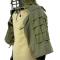 Sangle de tension de poitrine réglable. 3 boucles à gauche sur le dos pour porter la cape arrière (besoin d'acheter séparément)