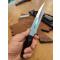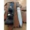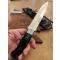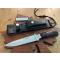 Couteau de la première moitié des années 1980 - En excellent état, sans rayures ni signes d'usure particuliers, il possède encore son affûtage d'usine d'origine - Version rare avec manche en micarta et tête gravée "De Oppresso Liber", la célèbre devise des bérets verts américains - Fourreau en cuir d'origine en excellent état, accompagné de la pierre à aiguiser d'origine.