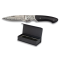 Sa lame damassée présente un motif caractéristique obtenu par superposition de couches d'acier. Ce type de lame est apprécié pour son aspect visuel et ses propriétés de coupe adaptées aux tâches courantes.