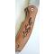La poignée est en bois de type Zebra, un bois présenté avec un motif rayé naturel. Sur cette poignée sont gravés des dessins de lièvres, ce qui donne au couteau un aspect original et décoratif tout en mettant en valeur un thème animalier.