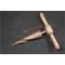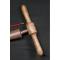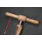 Poignée horizontale en bois pour exercer un mouvement rotatif manuel : cette poignée est traversée par la partie supérieure de la rape métallique conique.