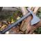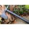 La tête de la hachette, d'une longueur de 17,15 cm, est forgée en Acier Carbone 1060, assurant une grande résistance et durabilité. Elle intègre un marteau véritable à l'arrière, parfait pour planter des piquets de tente. Le tranchant agressif mesure 10,48 cm. La finition Revêtement Poudre Noir (Black Powdercoat) offre une excellente résistance à la corrosion et à l'usure.