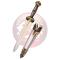Lame en acier : coupe droite à double tranchant, pensée pour l'aspect visuel plutôt que pour l'usage.