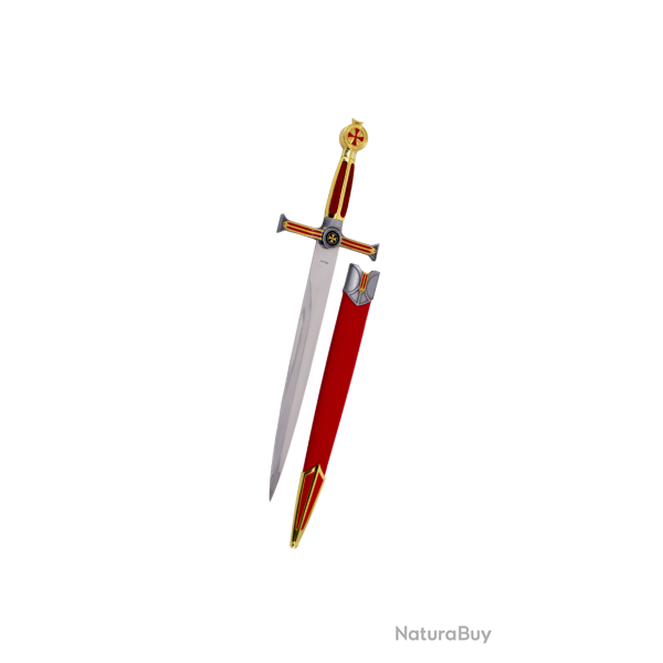 Garde dorée ornée de la croix templière rouge, symbole de courage et de dévouement