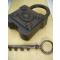 Ancien Cadenas XIX siècle/serrure/coffre/avec sa cle en métal forgé fonctionnel