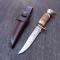 Ancien Couteau de Chasse ALLEMAND RICH.ABR.HERBER SOLINGEN Manche en Bois de Cerf avec Étui en cuir