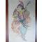 Ancien Dessin original à l'encre rehaussé en couleurs Japon Chine Asie