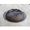 Ancien grand vide-poche en bronze de forme ovale, à jolie décor de pampres de vigne et grappe de raisin sur fond a décor de panier de vannerie.
