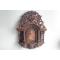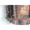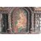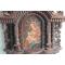 Ancien retable votif populaire en bois sculpté au centre peinture sur toile de la Vierge à l'enfant Art populaire colonial latino-américain, probablement Mexique, Pérou ou Bolivie dimensions peinture : 8,5 x 14,5 cm légères traces d'usage, petits éclats sur le cadre, voir photos