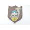 Blason en bois avec insigne peint.