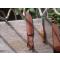 Assez joli puukko ,jamais servi ,pas de chocs,ni rayures sur la lame. Une rayure sur le manche de 2,5cm en haut à l'arrière côté gauche. Garde et pommeau en metal blanc qui ressemble à de l'argent ? Bon état dans l'ensemble .Lame brute noire sur le plat. Marquage de surface sur le plat incompréhensible ,à identifier.Longueur de lame 9,7cm. Epaisseur de lame 3mm. Longueur totale 20,7cm. Le fourreau n'est pas le sien.Regardez les photos,posez des questions ,retour refusé.
