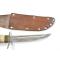 Traces d'utilisation sur la lame avec une trace d'affutage au début du tranchant côté droit. Pointe légèrement tordue.