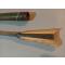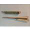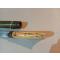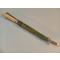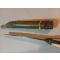 lame droite en acier gravée sur le plat et le dos d'un motif feuillage et une date 1899, poignée à plaquettes en os, soie en métal gravée de feuillage. A noter qu'il manque une petite pièce sur le haut du manche les plaquettes en os, la lame est à nettoyer piqures. Etui en cuir vert et bois