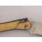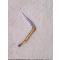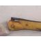 Trés ancien couteau laguiole bottine. Manche en trés belle matière avec cerclage d'époque. Manques en partie basse, plus fine. Lame normalement usée, sans jeu. Ressort ferme, comprenant abeille forgée. 18 cm ouvert, 10 cm fermé. Trés belle patine.