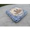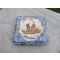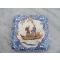 Bordure d'un beau bleu profond à décor de pivoines sur un fond de couleur ivoire.