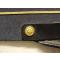 fausse jugulaire noire avec boucle dorée au centre, boutons dorés estampillés du logo Suisse
