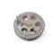 Pièce en acier étamé ou zingué, poignée en aluminium, coeur en métal oxydé.