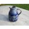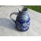Atypique ancien grand pichet en grès au sel sur fond bleu de cobalt d’Alsace.