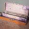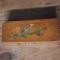 Ancien plumier en bois à deux compartiments avec décor peint à la main