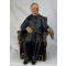 Sculpture avec beaucoup de détails et de finesses dans l’exécution de la représentation du personnage, du visage, de sa tenue et de son fauteuil.