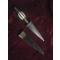 Ancienne dague-stylet de lancer -dite "PUNA"-origine espagne-etui en bois recouvert de velours garniture de laiton- belle lame triangulaire à deux tranchants-section losange-manche en laiton et belle matière-os ?- pointe du fourreau restaurée-il manque peut-être une garniture--