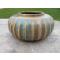 Rare et très jolie vase à panse aplatie d'un beau format avec spectaculaire grès émaillé et émaux cristallisés de couleur bleus et Couleur Ocre/terre claire.