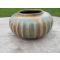 Ancien vase à panse aplatie en grès émaillé avec émaux cristallisés de couleur Bleus & Ocre/Terre claire, Desvres Fourmaintraux Delassus - FRANCE (Vers 1920)