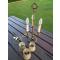 VINTAGE - Ancienne grande Lampe en Bronze et Métal Doré & Patiné a trois Lumières, sur pieds griffes, style Bouillotte (Vers 1950-60)