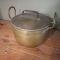 Ancienne Marmite couverte en cuivre jaune, poignées forgées à la main, rivets en cuivre rouge.