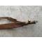 Ancienne bandoulière à plombs,  vide. En cuir souple havane clair .  Le bec verseur en laiton est fonctionnel. Bel accessoire de chasse du temps jadis.