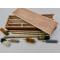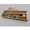 Boîte en bois massif avec assemblage à queues d’aronde, compartimentée, contenant plusieurs tiges en bois à embouts en laiton ainsi que divers écouvillons et brosses (laiton, acier, fibres naturelles, feutre), utilisable dans les calibres 12, 16, 20.
