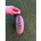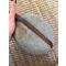 Ancienne gourde recouverte de feutre gris avec fermeture lacée sur le côté et sangle en cuir.