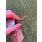 Équipée d’un bouchon en aluminium et d’un mousqueton métallique ancien portant un marquage.