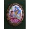 Ancienne grande broche ovale, bombé, a décor peint d'une scène galante - Porcelaine Limoges - France (Vers 1920)(N°1)