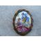 Authentique ancienne broche ovale, bombée de grande taille, en porcelaine de Limoge, datant de la premier moitié du XXéme siècle, vers 1920.